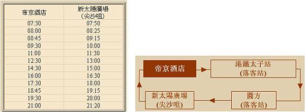 住這裡,只要行程規劃配合上表酒店出車時間,到太子地鐵站、九龍圓方購物中心、新太陽廣場(海港城對面),非常方便,也可以節省時間、體力(不用爬上爬下搭地鐵)和車資。