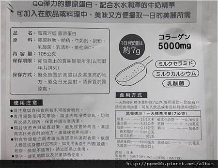 而Suntory蜜露珂娜是...扒文了一下才確定他的膠原蛋白來自豬皮,但成分上沒有標示,只因為女人我最大推薦過,現在成為炙手可熱的美容保養食品,我問婆婆吃了1個月有沒有感覺皮膚比較水水的,婆婆說還沒有咧,這些女生們不論年紀一概好騙,suntory milcolla或許乳酸菌有對腸胃有點助益,但是豬皮提煉的膠原蛋白,應該和好市多賣的Collagen差不多吧,若要說差別,最大應該是外包裝給人的感覺,日本人就是很會包裝產品,光外包裝設計讓人看起來就是舒服&有信賴感,比好市多的勝過不知多少倍,還有就是TV傳播的助益更大,其實女人我最大現在很多產品都是置入行銷,價格不便宜,不要只是一味相信,先查證一下再用吧。