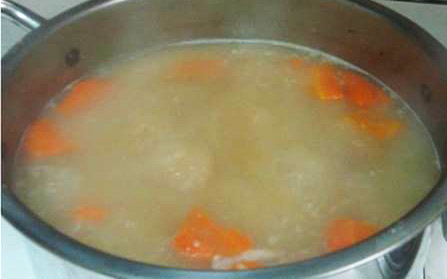 滾開約5分鐘後,用中火讓持續熬煮,注意不要溢出來,大約10分鐘加一杯冷水+撈除浮沫,1個小時就會看到顏色慢慢變白