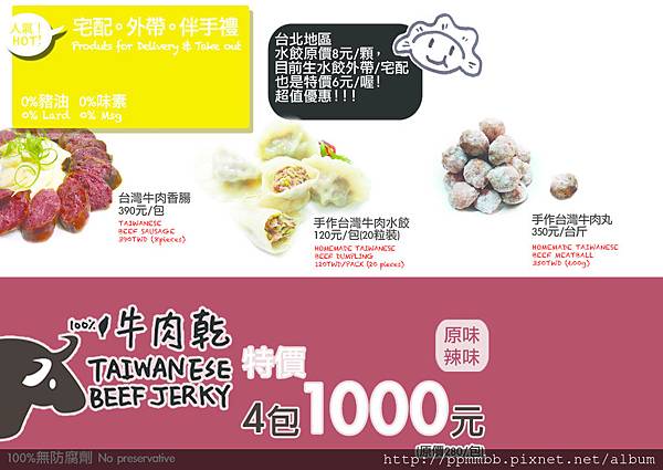 4.台灣牛肉乾(原味。辣味) 特價4包1000元 (原價280元/包)