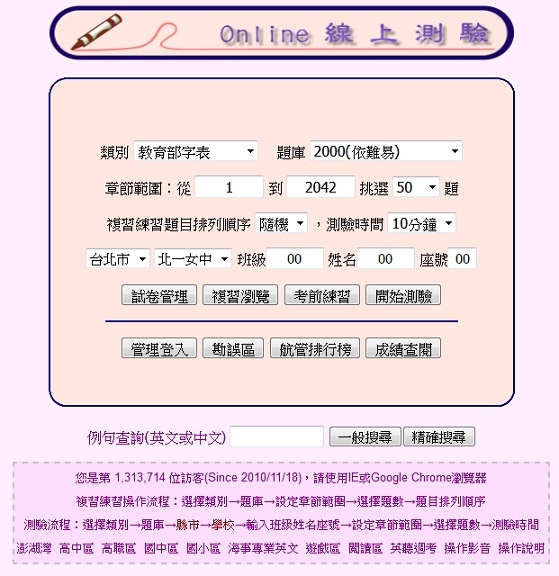 (班級、姓名、座號隨意填寫即可測驗)
