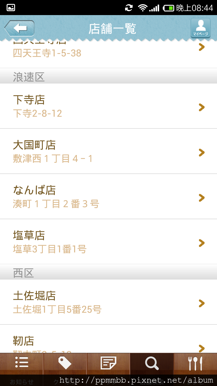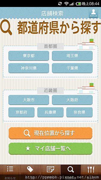 看最下面bar選單,放大鏡圖案,可以搜尋店點