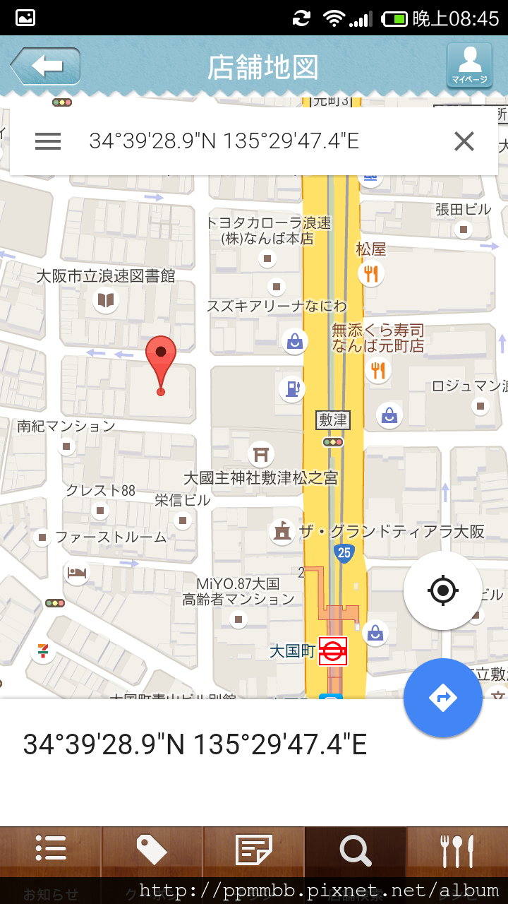 點地圖,就可以看到大国町店在,地圖的哪裡,就是把google地圖,已經崁入APP裡面,這個APP真方便查詢