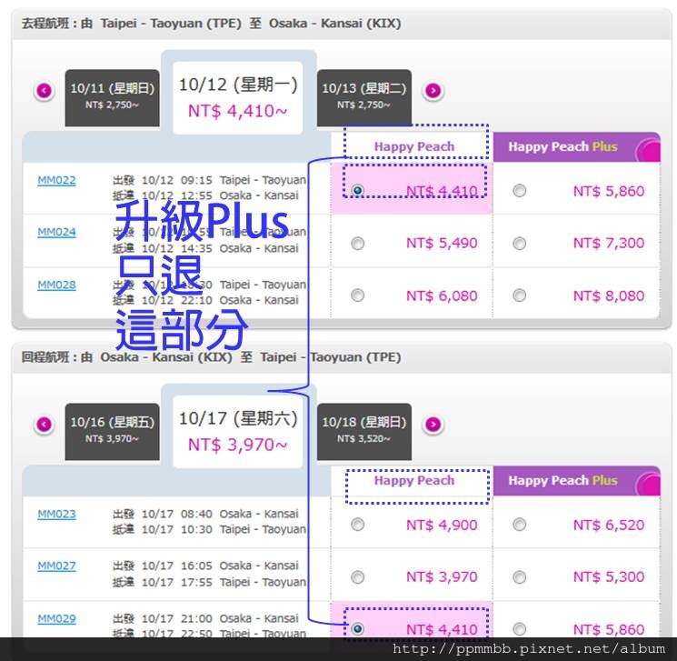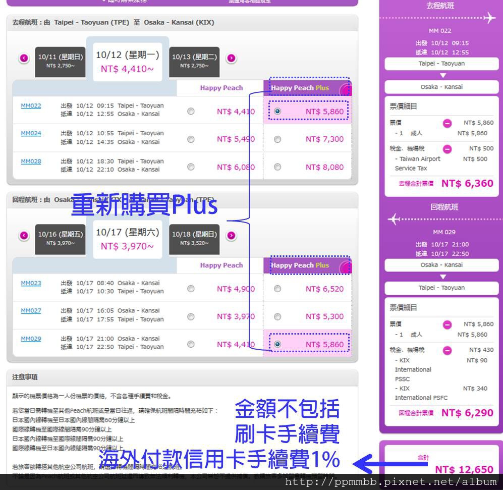 範例(圖3) : 重新購買同時段Happy Peach Plus機票NT$12650
