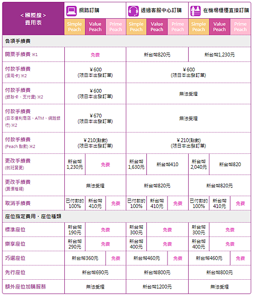 - Prime Peach﹕不另收取取消手續費,已付款費用以Peach點數退還。