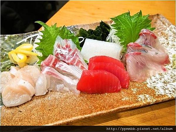 お造り5種盛り合わせ( 5 種生魚片拼盤),鯛魚,金槍魚,烏賊,鰤魚,扇貝