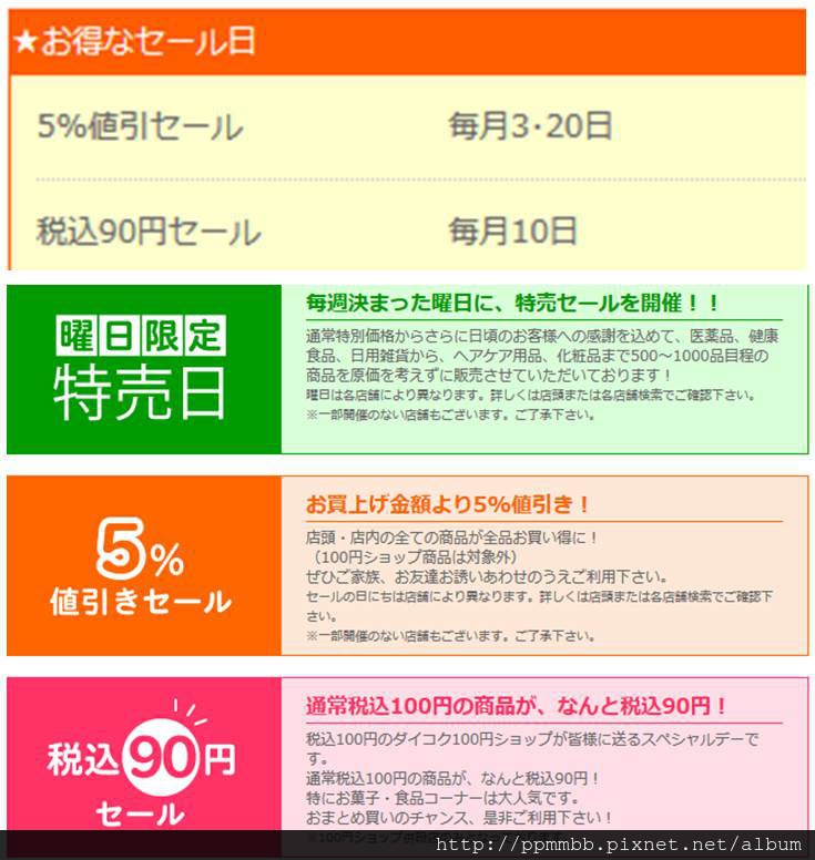 全店除 100 元商品之外,每月 3 日、 20 日,全面 5%OFF