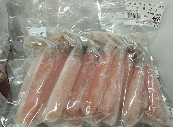 ODA生食級蟹腳,不算殼肉的長度大約15-16CM,寬度大概2.5-3CM,25本,約台幣1300元,應該算很超值,生食級肉質感覺比較優,不過這種冷凍的生食蟹肉我是不敢嘗試,買回飯店後,用滾開水完全沖掉表層浮冰&淨化,然後在火鍋中川燙一下就可以吃,蟹肉飽滿鮮甜,我家3人吃火鍋這樣一大包,吃起來超過癮 ~ 冬季限定,在飯店房間這樣吃,完全不需要找吃蟹的餐廳