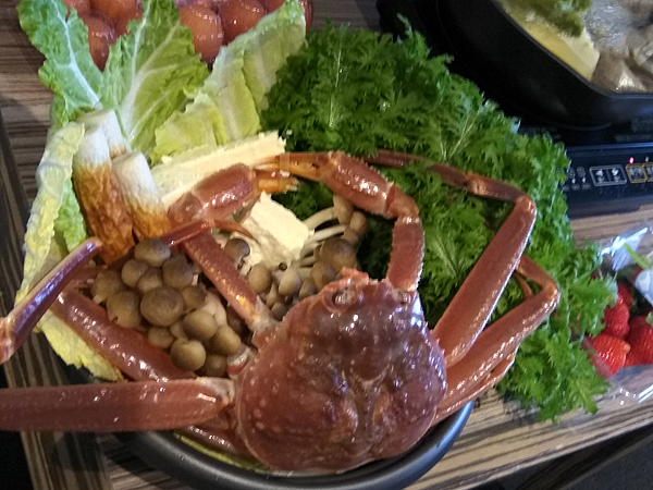 用活的松葉蟹,在有小廚房的飯店煮火鍋