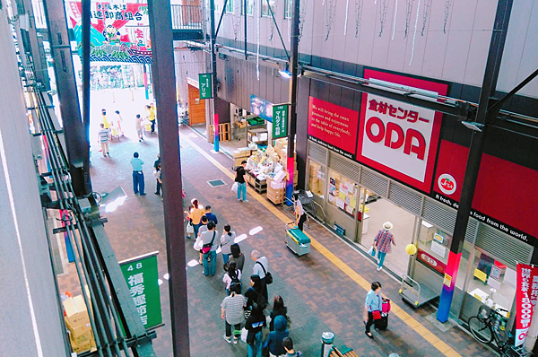 購買熟食可在ODA超市裡維波加熱,和市場中間這區拱廊公共休息區可以慢慢享用,平價、新鮮、庶民味十足,接地契體驗深入日本生活