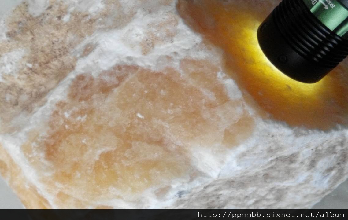 照黃光,更清楚看到整顆原石有多透,幾乎透過整顆原石,這就是金田黃美麗的地方