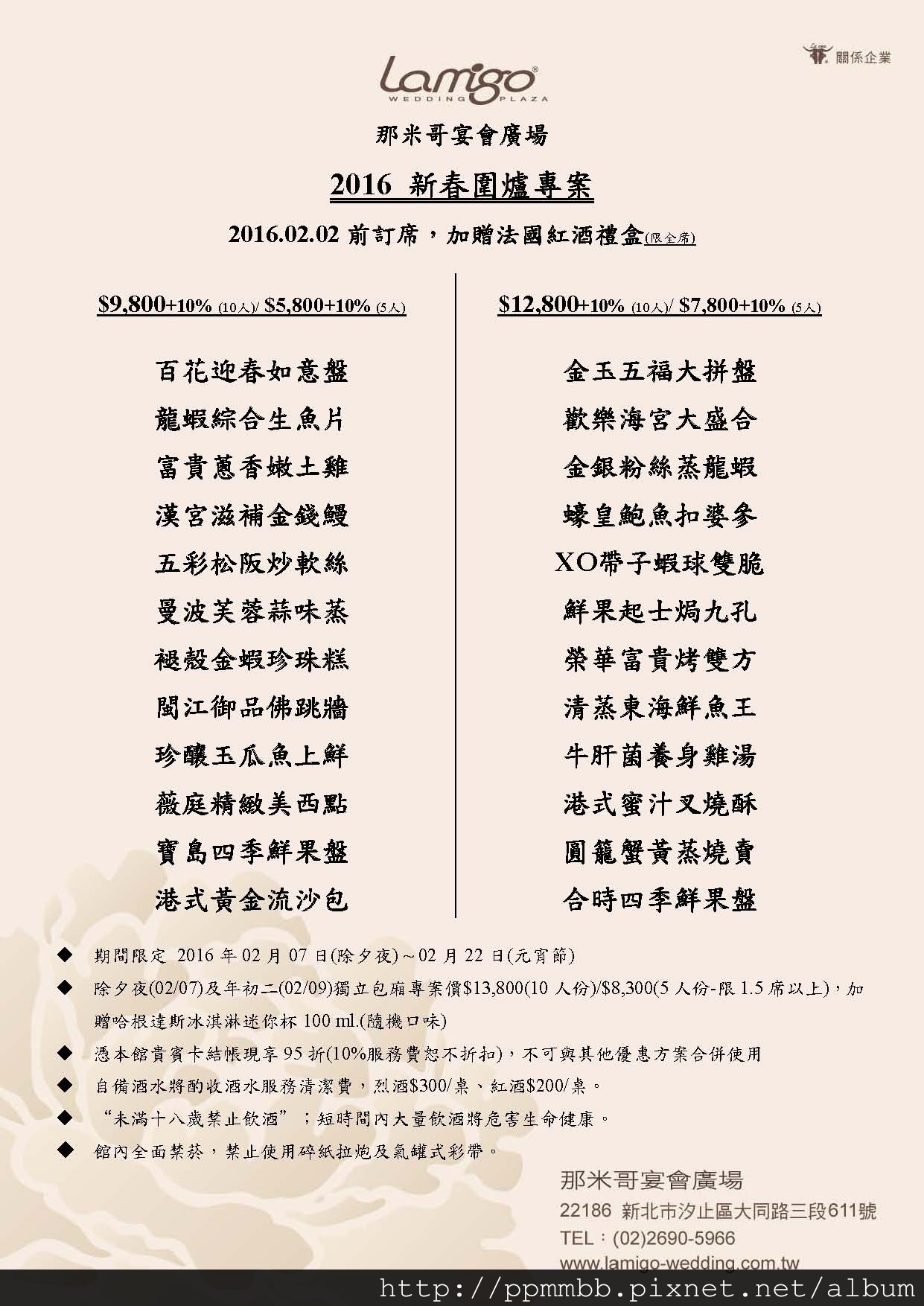 觀景軒中餐廳,圍爐春節年菜 席設10位(單點菜單暫停供應)/2016年2/62/14