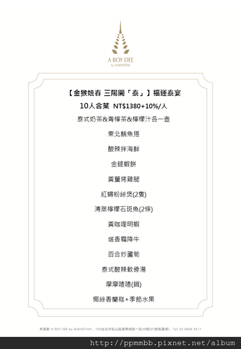 將泰式年夜飯,每人NT2200+10%起,台北市信義區松高路19號6樓 02-6617 5511