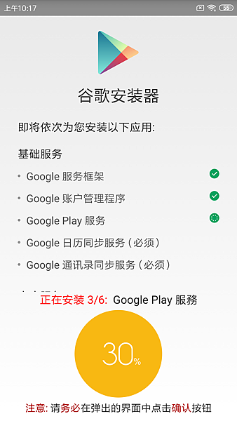 googleplay就安裝完成了,只是第一次進入系統時,會被要求要同意googleplay對手機定位,先選擇同意,等安裝完後,在取消訂位即可
