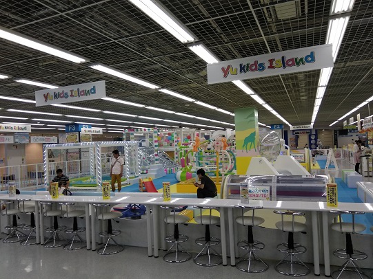 3F兒童專屬曾樓層YU KIDS ISLAND,有帶著小BABY的到這一層很有歸屬感,軟綿綿的小型遊樂場(須付費),有的爸爸在這裡陪孩子,媽媽在店內逛,對於疑似非家長的陌生人若在附近拍照,管理員會特別詢問,感覺滿注意孩子遊戲之外的安全性,20分300円,60分鐘500円,平日無限時間