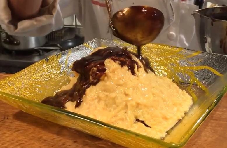 胖胖蛋像火山爆發岩漿般瞬間滑落,包住整盤的炒飯