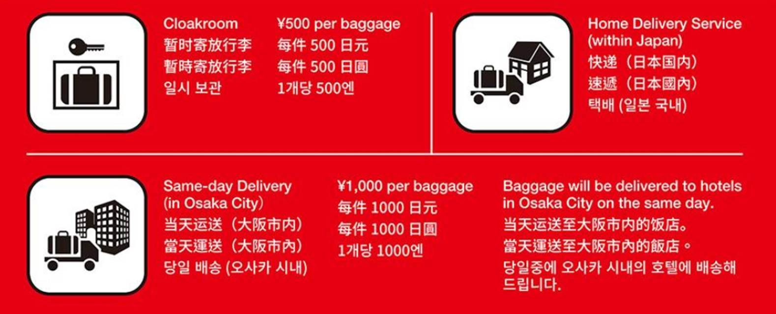 行李寄放500円 / 大阪市內當天寄送到各飯店1000円 / 快遞費 (請詢問服務員)