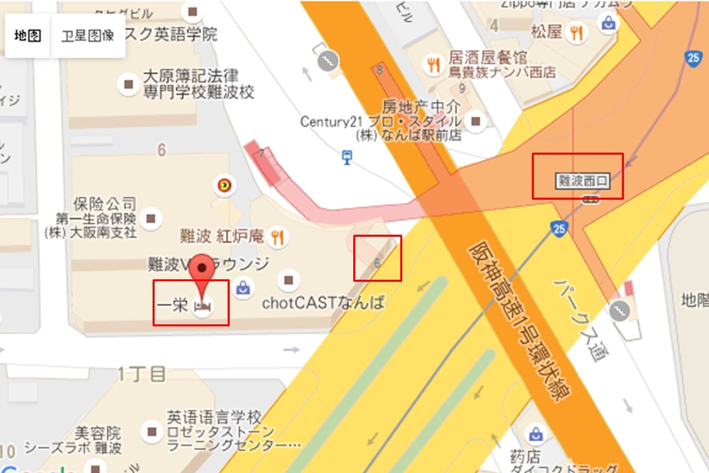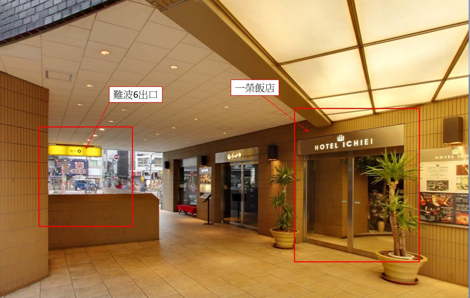 難波"西口" 6號出口,出來右轉,就會看到Hotel Ichiei一榮飯店大門