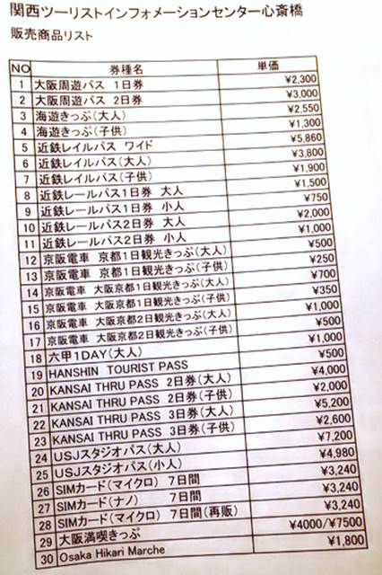 ・大阪周遊卡1日券・2日券