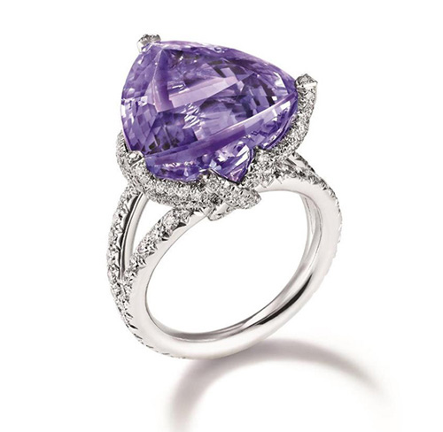 丹泉石迷人特色是色彩多向性,時而深藍、時而紅紫、時而棕黃,隨著觀看方向或角度不同呈現不同色彩,未經處理的丹泉石一般為褐色,熱處理引出了美麗的藍和靛色多向色,之所以會取名為坦桑石,也是因為這種寶石就像坦尚尼亞的黃昏天空一樣,顏色深藍帶紫色,有很強的多色性,B級坦桑藍呈深紫色,呈現較少的顏色變化,C級呈淡紫色,從不同角度看只有顏色深淺不同。但各種級別的坦桑藍在晶瑩、純凈和折射率方面則是相同的。,今日市場上95%的藍色丹泉石均是熱處理的成果,沒加熱過的單泉石其實火彩不怎麼美,熱處理是個很常見的技法,大多數有色寶石都能用這個技術大幅度增進色澤,在寶石業是可以被接受的加工方式,但是把熱處理寶石標上未處理的價錢販售就是欺騙的行為。