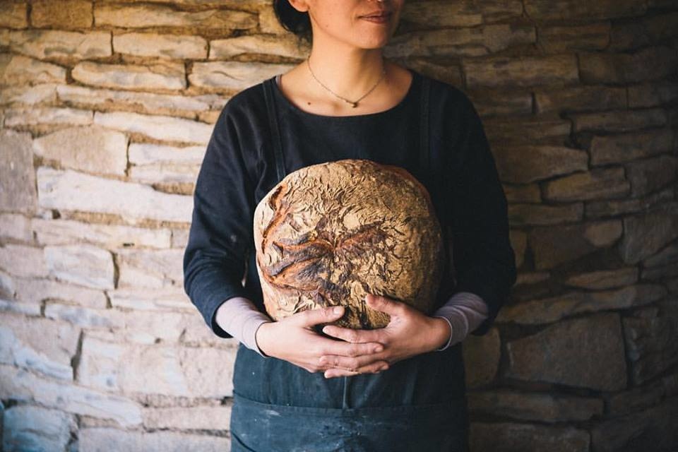 完全用天然酵母的手工麵包,從柴火預備放進烤爐的前2天開始要開始醒麵,柴火慢慢在烤爐裡升溫時,開始揉面,一邊觀察麵團發酵程度,一邊測量烤爐溫度,一個人就這樣默默開始創業