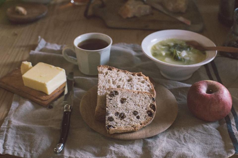 每日不同的“麵包套餐”,吐司麵包、自製鳳尾魚蔬菜溫沙拉、蔓菁濃湯以及有機紅茶…