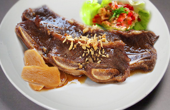 2.翻面,煎20-30秒,放在鍋中約1-3分鐘,帶骨牛小排一定要熟透,利用鍋子餘溫讓中間自然熟透,邊緣微焦、微脆,但肉質Q彈有嚼勁不會老到咬不動