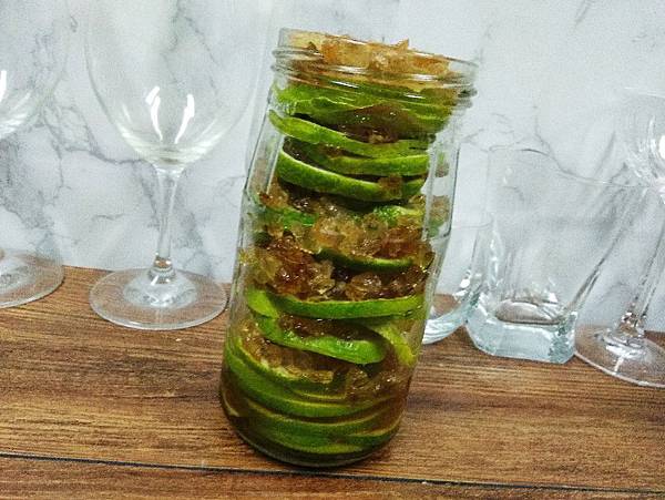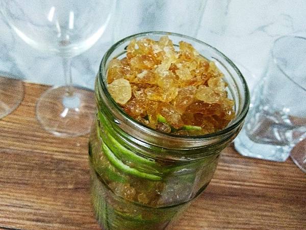 2020年6月後記:綠檸檬雖然沒有黃檸檬香氣好,而且表皮苦澀口感非常酸,鹽漬時將冰糖份量提高,醃漬時間拉長可以降低表皮苦澀味,選用顆粒最粗的冰糖,拉長溶解時間能提升醃漬檸檬片的口感;冰箱冷藏比室溫發酵的慢,前14天可以放在避免日曬的陰涼處加快發酵速度,待製作完成再移入冰箱冷藏保鮮,可以用來調味涼拌菜、醃肉、去魚腥、泡水喝補充天然維他命C