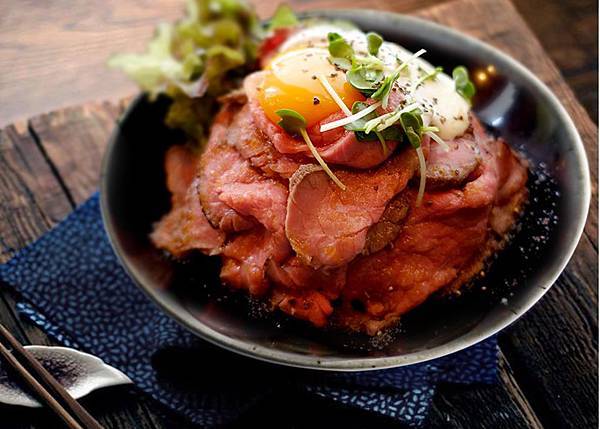 作法 : 1.飯碗內放3分滿的白飯,2.烤牛肉醬汁+日本鰹魚醬油+少許二砂,MIX後微波30秒加溫,3.淋在飯上,4.烤5分熟的牛肉切大薄片,5.層層疊放在飯上面,要幾層自己可以決定,寶貝想吃很多肉時就要鋪很多層,6.放一顆微熟的石安雞蛋,灑粗胡椒粒鹽、灑點玫瑰鹽,再加點生菜,就是神戶牛排丼飯。