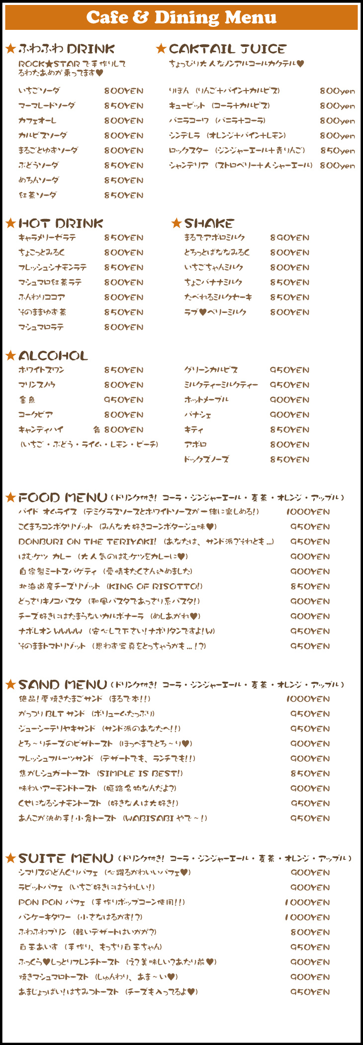 不限時消費時段:1,200 JPY(只有6:00 pm - 9:00 pm,且不包含星期六) ※附飲料 地圖 官方網站(僅日文)