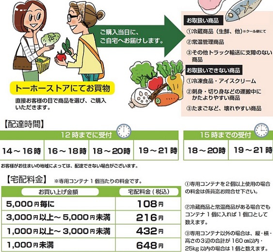 TOHO超市還有一個貼心服務,當日宅配,買了之後幫你宅配到飯店,而且運費不貴,自由行在超市想買什麼重物都不怕,可以多加利用,輕鬆的繼續下一個行程~
