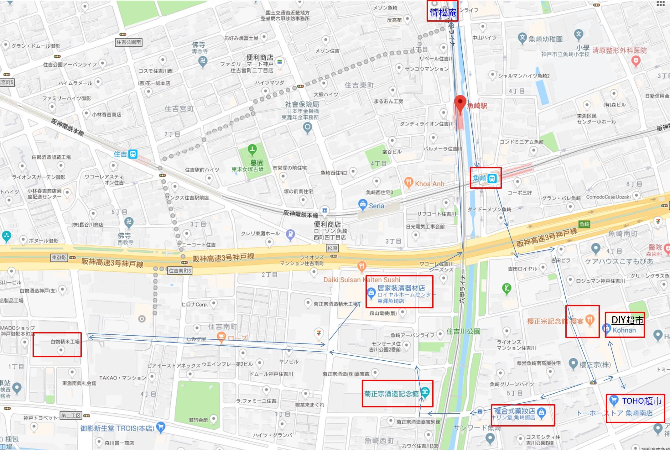點我看神戶私房路線,魚崎品清酒→3大超市→ 住吉川清流→倚松庵→居酒屋一日遊