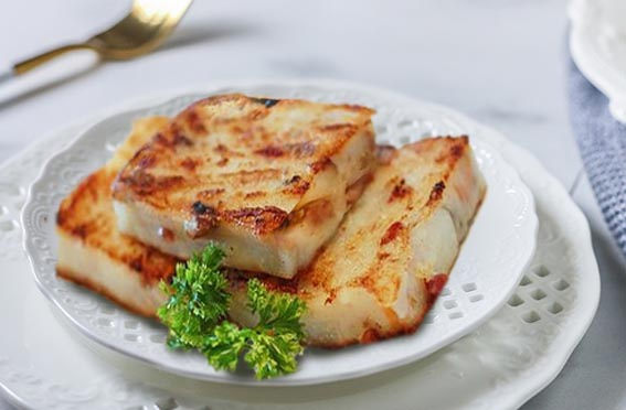 ♡港式蘿蔔糕較軟嫩,要完全冷卻後才會定型,蒸熟涼透後,放冰箱2-3小時以上定型,切片時才不會散掉