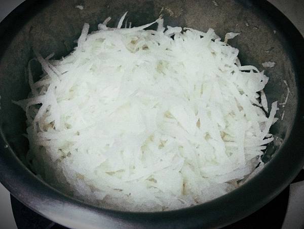 5.白蘿蔔放入電鍋,外鍋半杯水,蒸到微軟即可,不可蒸過熟,跳起來後保溫備用