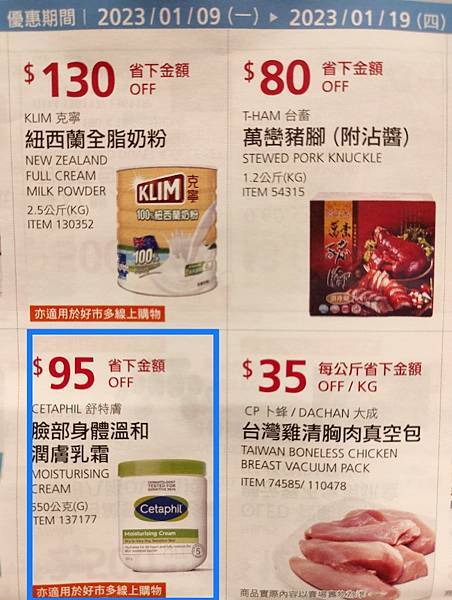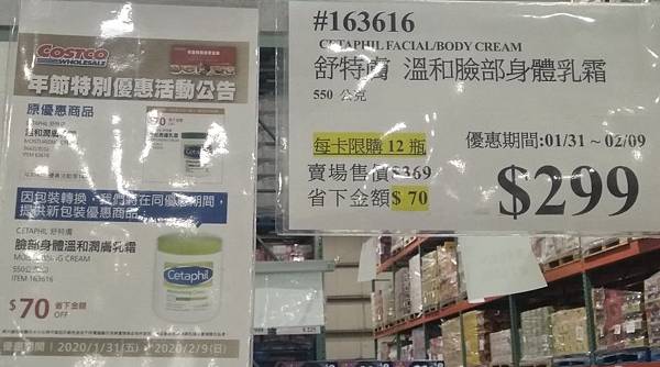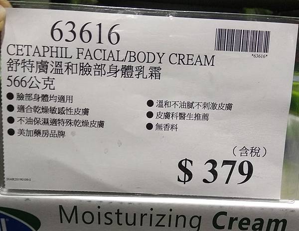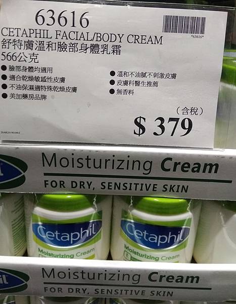 好市多賣場告示牌和產品包裝上都有標示臉部和身體乳霜