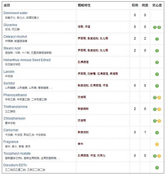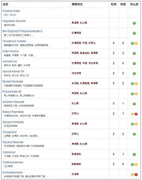 成分中Cetearyl Alcohol棕櫚醇, 鯨蠟硬脂醇,對皮膚無害是一種不錯的保濕成分,stearyl alcohol硬脂醇 ,這2種成分都可能引發粉刺和刺激皮膚,含有Benzyl Alcohol 苯甲醇,成份主顯示含苯甲醇樣、苯氧乙醇擦在嘴唇似乎不太好