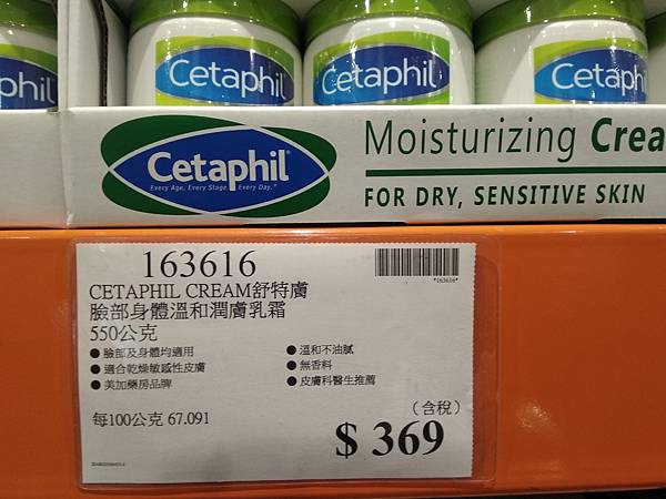 有異位性皮膚炎或皮膚乾燥到發癢的人應該不陌生,好市多舒特膚溫和乳霜Cetaphil body cream產品強調「最多美國皮膚科專家推薦的皮膚保養品牌,2009年針對醫療專業人員研究調查為『最多美國皮膚科及小兒科專家共同推薦』,能減緩皮膚水分流失,長時間保持肌膚滋潤,2023最新優惠價格550g