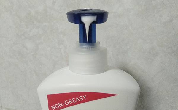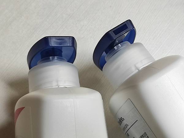 擠出口有點過大的扁平狀,概念和當初黑人牙膏擠出管徑變大一樣,讓消費者增加一次使用量以提高銷售量,但乳液是滑順的霜狀擠壓口扁平又過大,擠壓後很容易掛著一條乳液,常要用手指刮一下開口流出的多餘乳液,擠壓口的微量乳液長時間與空氣接觸實在不太好,所以我喜歡罐裝,不愛擠壓式