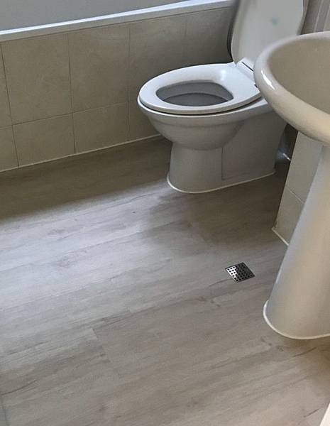 老闆知道我還有需要鋪的地方,所以讓我看他鋪完的浴室,非常積極的老闆,只是先鋪的這10幾坪目的在試SPC適不適合我家潮濕環境,因為廚房有幾片用廢料補鋪,讓我猶豫浴室和其他區域要不要讓老闆繼續施作,施工始終如一的態度對我來說很重要