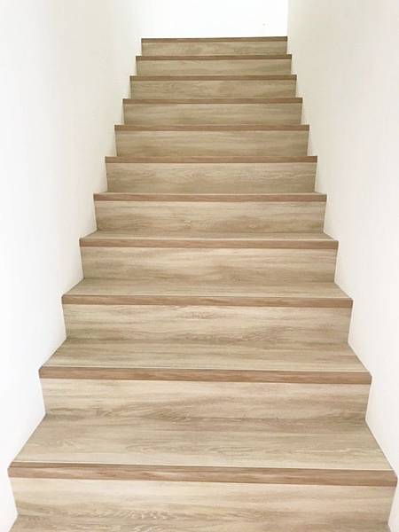 積極的老闆讓我看他鋪完的其他家樓梯部分,感覺封邊條塑膠感太重,踩踏密集的樓梯接縫處異常多,容易在上下樓時腳頻繁踩踏的7型封邊條處非常容易卡塵垢,剛鋪好時,很新且乾淨,看起來會滿清爽,但是用了幾年後,踩踏處和非踩踏處就會出現色差,也非常不好清潔,這似乎是樓梯不可避免的問題,也是讓我猶豫樓梯遲遲未鋪SPC的原因,有些人會在樓梯踩踏中間處加一層地毯或耐磨地貼防護,但清潔問題依舊是考驗