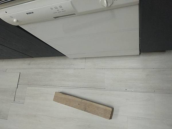 回歸正題,到目前為止感覺這款淺色spc地板滿容易保持乾淨,深色地板大家都覺得優點是耐髒,個人感覺耐髒是不易看見髒處,但髒污還是在那裡只是不易看見而不是不髒,淺色滿適合我人口簡單的小家庭, 當初各家超耐磨地板和石塑地板廠商都說微斜坡廚房不能鋪石塑地板,讓我有點擔心真會有縫隙或卡扣無法平整而產生什麼使用上的問題,或許因為廚房鋪設時,每片地板底下都有上少許矽利康防止移動,雖然交接處些微小落差,使得擦地時要特別清一下之外,其他也沒什麼困擾的問題。