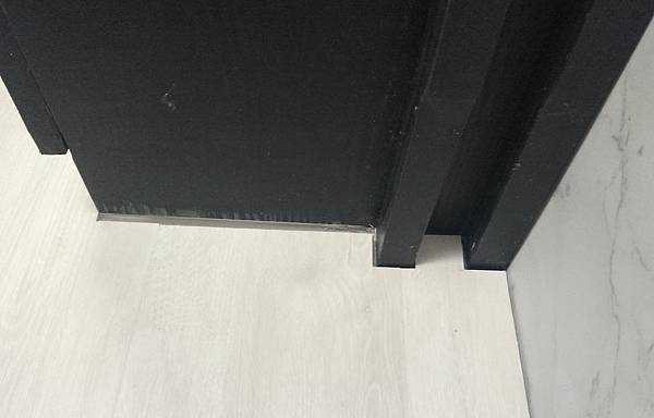 鋪後過一陣子才發現,廚房櫥櫃下整排沒有鋪,也沒有加收邊條封邊
