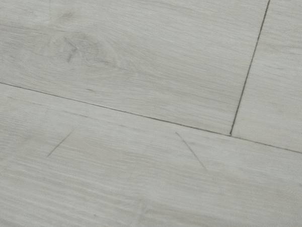 SPC木紋壓的深乍看是很美,觸感也很好,但是用久了非常容易在表面凹凸紋上中卡垢,這就要純手工用抹布將凹紋內污垢去除,尤其用在油煙和容易滴到水的廚房,所以選擇SPC時,凹凸紋深度要特別注意,壓紋過深的最好別選,好的SPC壓紋仿真會做的和真木紋接近,不會壓到像沐石這麼深。