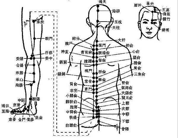 膀胱經是人體最特別的經絡,在脊椎兩側各有兩條