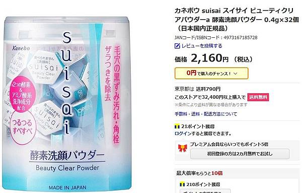 Top3 佳麗寶suisai酵素洗顏粉(suisai ビューティクリアパウダーa)