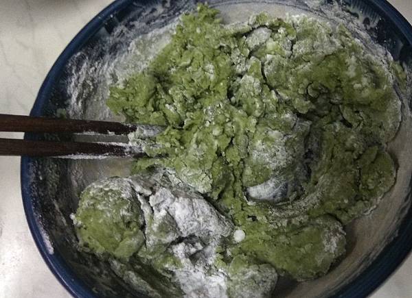 1.將糯米粉、抹茶粉調水