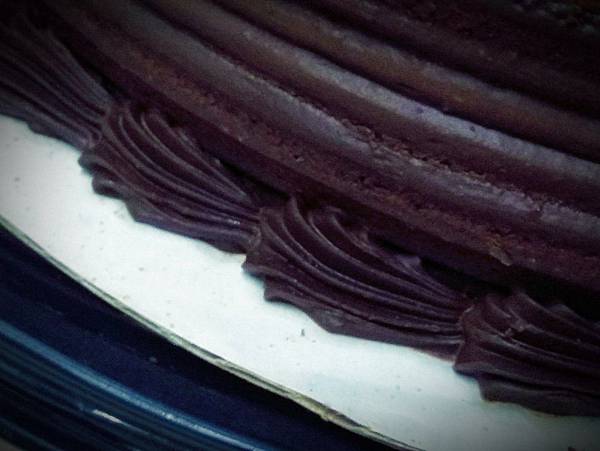 蛋糕底部週邊,一樣很大方的擠滿73%的比利時巧克力醬