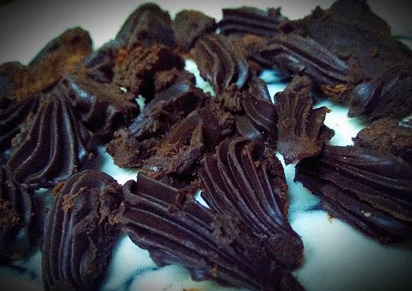 冰過的巧克力軟中帶硬,很方便用一般的果醬抹刀或小水果刀取下來,可以放在下層的蛋糕圓面當裝飾