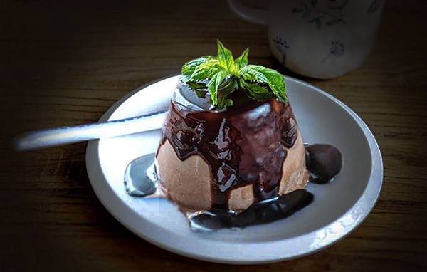 巧克力奶酪淋醬,作法:比利時巧克力醬 →少許放碗裡 →微波一下變軟 →到在奶酪上