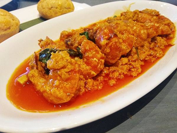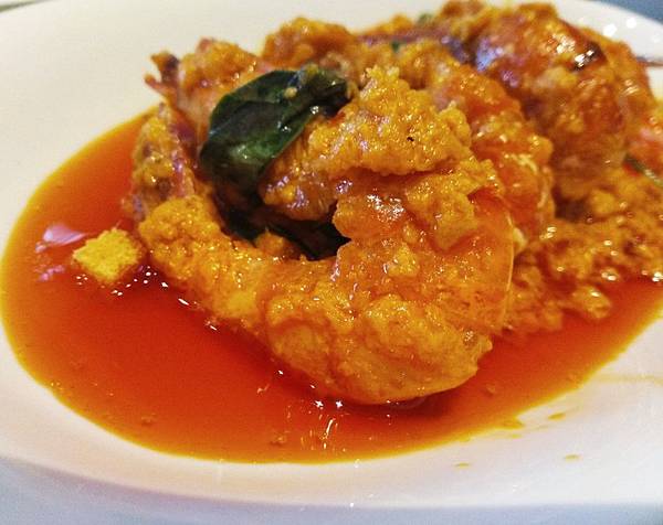 紅油咖哩蝦,重口味菜式,調味非常棒,蝦個頭也不小,但蝦肉軟爛不夠新鮮,這應該是自己失算,看過波登不設限都知道,週一別上餐館,因為一般餐廳習慣用前一日剩餘食材會不夠新鮮,我們過年期間來,休市哪能進到鮮蝦,當然這道的食材不及格